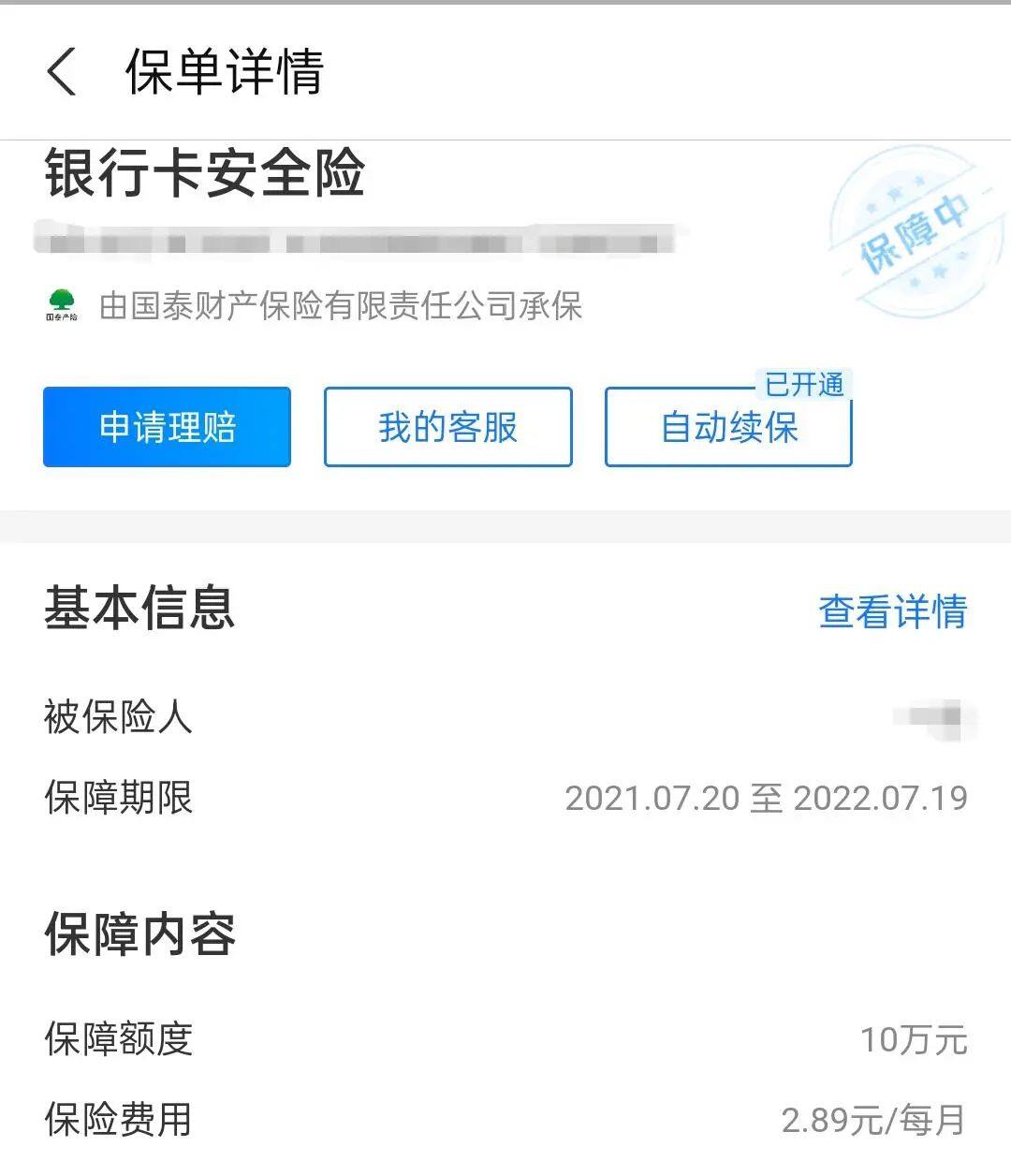 它可以賠付個人名下儲蓄卡信用卡被人盜刷、盜用等產生的損失