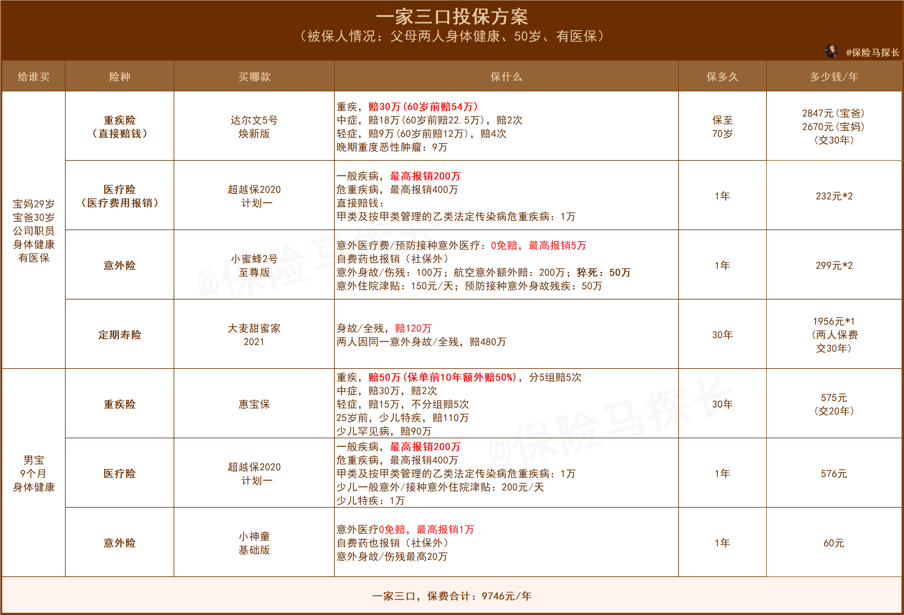 按照上面邏輯,就算你是剛了解保險,也能很好的get到關(guān)鍵點(diǎn),為自己家庭配置方案啦。