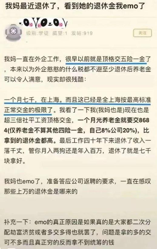 上半年有個很火的帖子,發(fā)帖網(wǎng)友的母親是外企高管,很早開始就按頂格交養(yǎng)老金。
